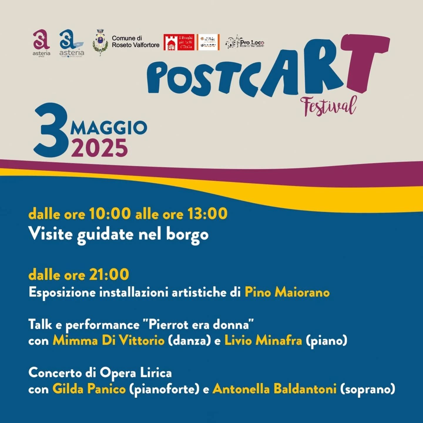 Il PostcAR..T Festival è molto più di un evento: è il primo passo di un nuovo cammino per Roseto Valfortore, che investe nella cultura, nell’arte e nella creatività giovanile come strumenti di rigenerazione e sviluppo. Un invito aperto a tutti per scoprire, vivere e sostenere una visione nuova, radicata nella bellezza e nel potenziale del territorio.