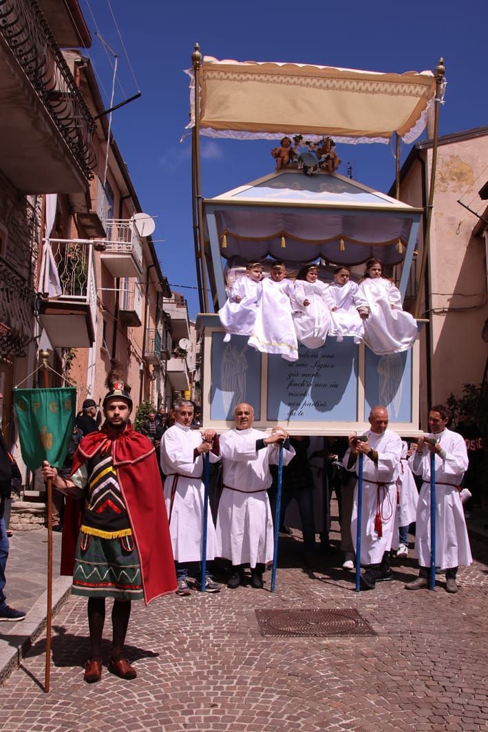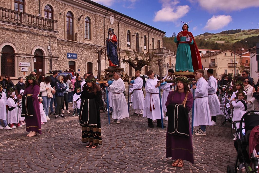 La sacra rappresentazione vede la partecipazione di oltre cinquanta figuranti, tra adulti e bambini, e rappresenta uno degli esempi più autentici di teatro religioso popolare nel Mezzogiorno. In passato alcuni ruoli venivano addirittura assegnati attraverso una sorta di “asta”, segno della forte devozione e dell’onore che la popolazione attribuisce alla partecipazione alla processione.
